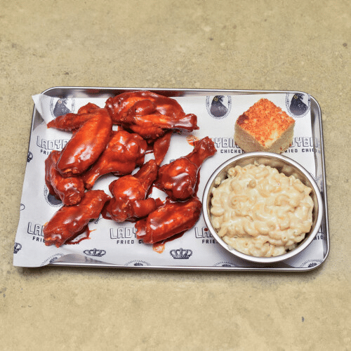 8 stuks krokant gebakken flats en drumettes met maisbrood en een bijgerecht naar keuze